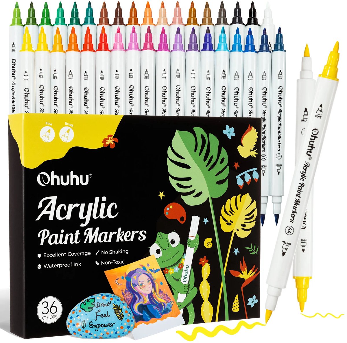 Markere acrilice Ohuhu cu vârf dublu, miez de bumbac, 36 de culori – vârf pensulă și vârf fin