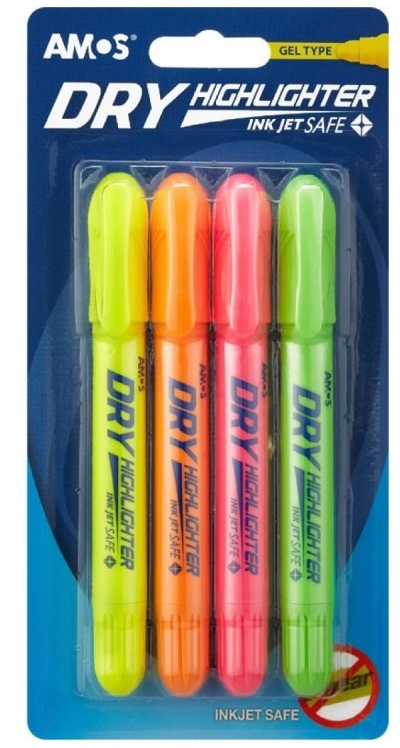 Caracteristici set 4 markere evidențiatoare Amos Dry:
