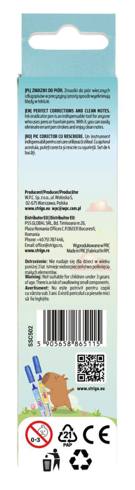 - Set practic de 4 picuri STRIGO din seria Capybara, destinat ștersului cernelei de la pixuri sau pene.