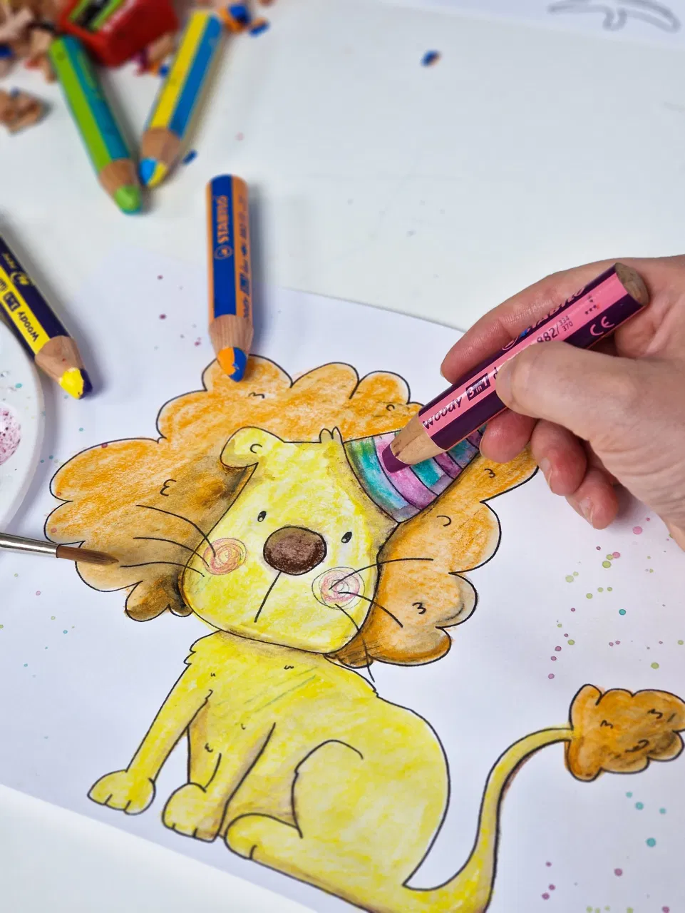 Atâtea posibilități cu un singur creion STABILO woody 3 în 1 duo .Acest creion multifuncțional pictează pe hârtie deschisă sau închisă, carton, sticlă sau alte suprafețe netede și poate fi, de asemenea, acuarelat cu apă. Datorită formei sale, STABILO woody 3 în 1 duo se potrivește perfect în mâinile copiilor și, cu mina sa robustă, poate rezista chiar și aventurilor de colorat mai nebunești. Mina groasă oferă distracție extra-lungă a picturii și o așezare bogată a culorii.