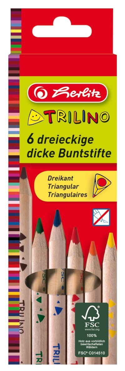 Set cu 6 creioane colorate, triunghiulare.Caracteristici:lemn natural;6 culori diferite;formă triunghilară jumbo;mină cu diametru de 5 mm.