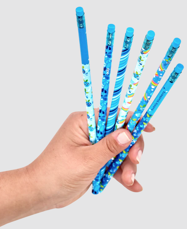 Fiecare dintre cele 6 creioane cu parfum de afine are propriile modele inspirate de fructe. Secretul parfumului fructat se află în aceste creioane din grafit nr.2. Perfect și pentru teme sau pentru școală.