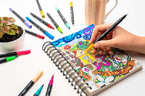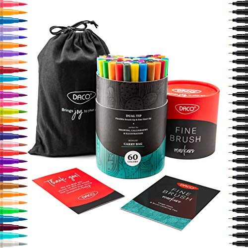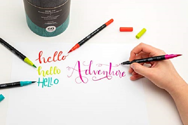 Set de 60 carioci pe bază de apă cu cu vârf dublu pentru caligrafie și desen. Sunt non toxice.