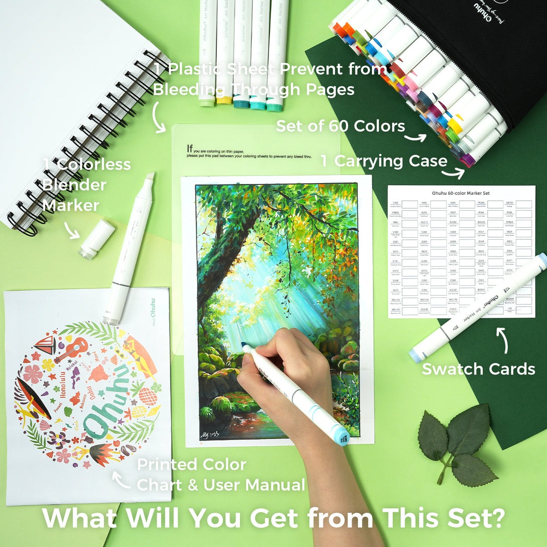 • Set 60 markere Fine & Chisel - Ohuhu Oahu - Multicolor