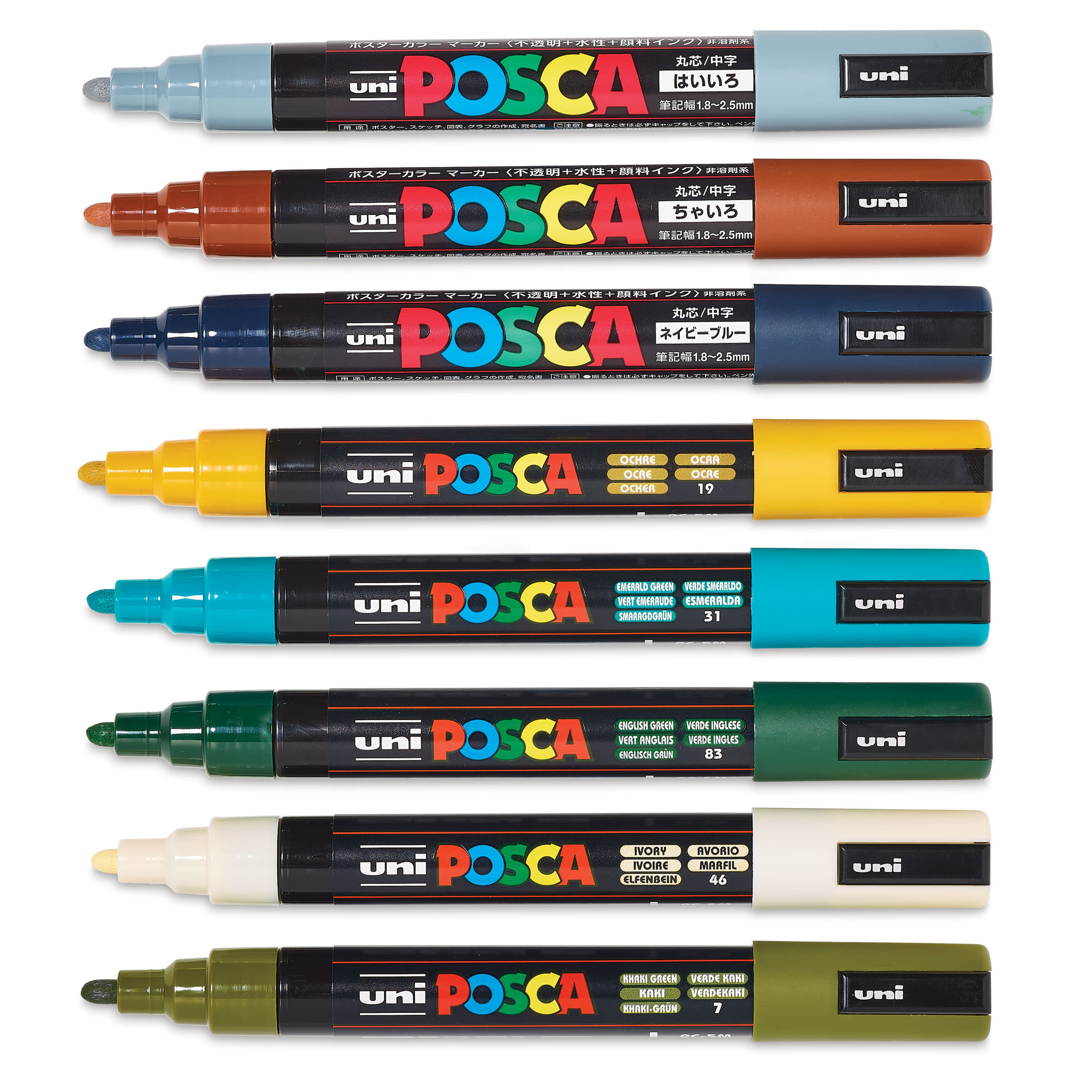 Set 8 markere - Posca PC-5M - Earth Tones, fiecare marker cu vârful mediu de 1.8-2.5mm.