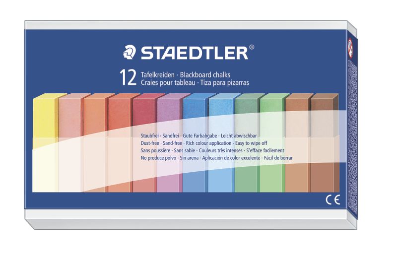 Un set cu 12 bucăți de cretă în diverse culori.