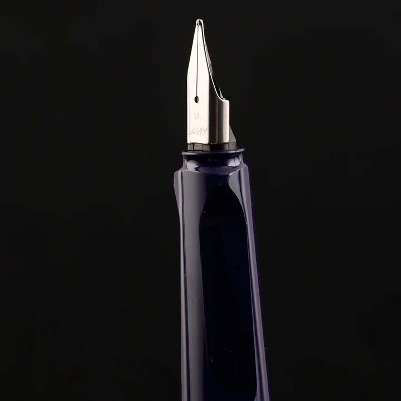 - Vârful M (Medium) creează o linie groasă, mai vizibilă, mai fluidă și constantă, indiferent de unghiul de scriere. Este mai neted și mai confortabil pentru scrierea pe termen lung. Breșa vârfului M este mai lată, permițând un debit mai mare de cerneală și, astfel, o linie mai groasă.