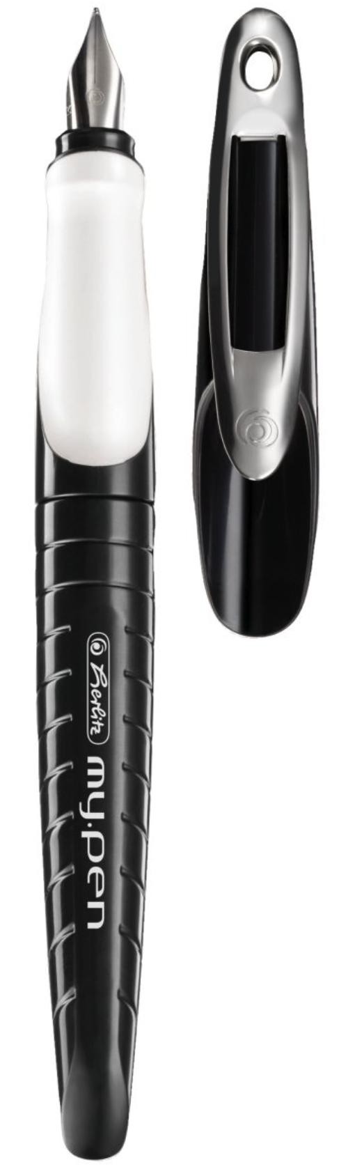 Stilou my.pen, penita L din otel inoxidabil, corp din material plastic, grip ergonomic anti-alunecare, potrivit atat pentru dreptaci cat si pentru stangaci, clips metalic flexibil, alimentare cu patroane de cerneala, culoare negru/alb, prezentare: blister (1 patron de cerneala inclus).