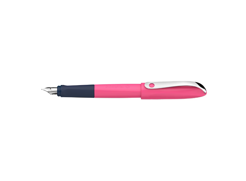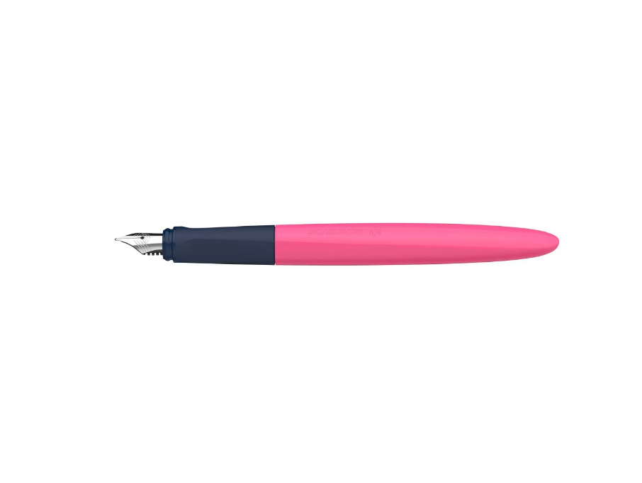 Stiloul Wavy, creat pentru elevi, este disponibil in patru culori stralucitoare — albastru, verde, roz si portocaliu – si este echipat cu penita din otel inoxidabil, rezistenta, si cu varf din iridiu – perfect pentru elevii care incep sa scrie cu stiloul. Zona de prindere, cauciucata, ergonomica, potrivita pentru dreptaci si stangaci, induce pozitia corecta de scris; in plus, zona generoasa pentru prindere, moale, disipa punctele de presiune.
