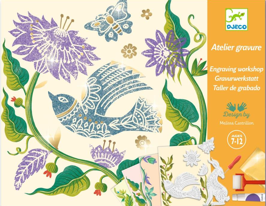 Descoperiți lumea magică a gravurii și imprimării cu acest superb set creativ Djeco! „Atelierul de flori” este un set creativ special care le permite copiilor să învețe în mod jucăuș elementele de bază ale gravurii și apoi să își creeze propriile imagini decorative uimitoare și felicitări unice.