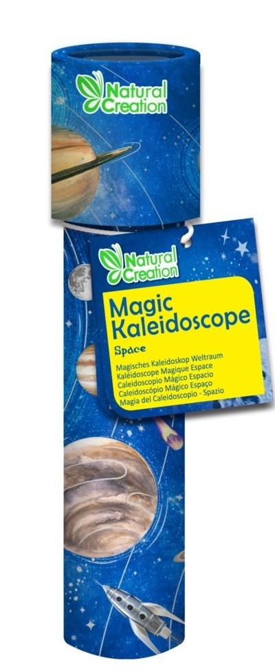 Cu un caleidoscop magic, se deschide o lume cu totul nouă - plină de culori și modele. De fiecare dată când tubul este rotit, formele și figurile își schimbă locurile, creând noi modele simetrice care fascinează atât copiii, cât și adulții. Un caleidoscop invită la imersiune, joacă și uimire - și devine rapid o mică călătorie în lumea imaginației. Aici, prezentat într-o variantă albastru închis, decorată cu planete și stele.