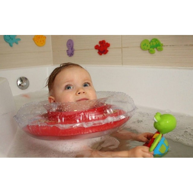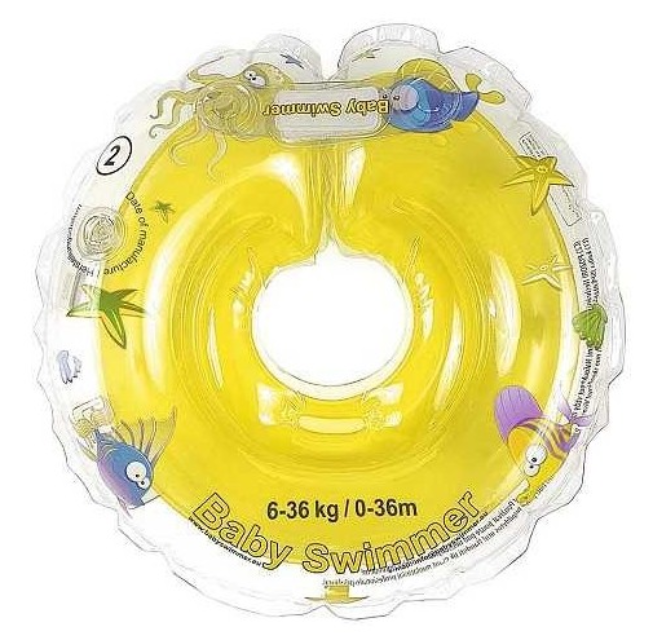Colac de gât pentru bebeluși 6-36 luni (greutate suportată 6-16 kg), cu diametrul interior al colacului (pentru gât) - 9.5 cm, diametrul exterior (total) - 37 cm.