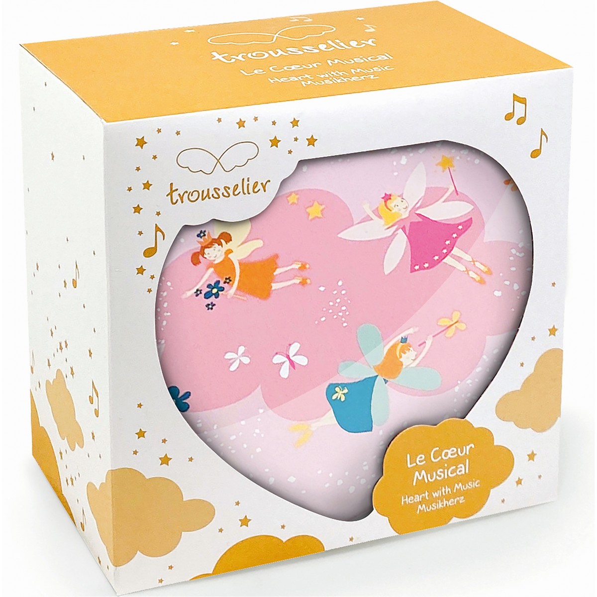 Cutiuta muzicala in forma de inima. Cutiuta este din lemn si e acoperita pe exterior cu hartie imprimata.