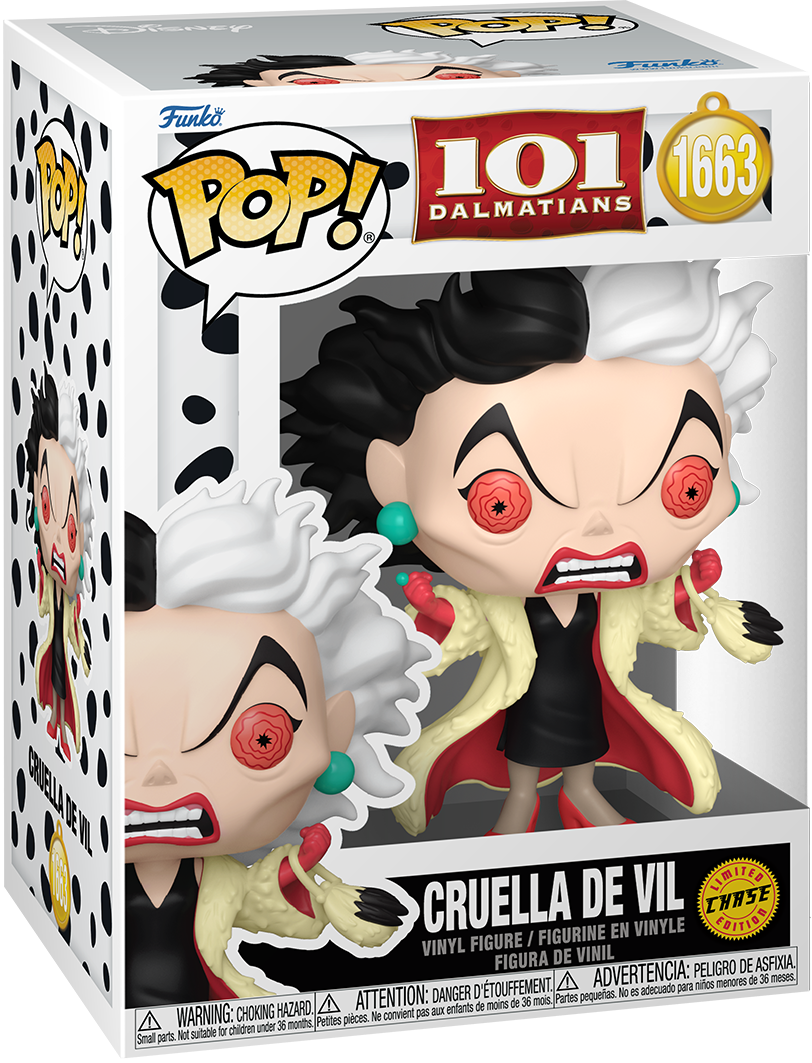 POP! Cruella de Vil este în căutarea următoarei sale haine de blană și are ochii ațintiți asupra dalmațienilor din colecția ta! Transformă acest personaj negativ stilat în următoarea adiție din gama ta inspirată din 101 Dalmatians.