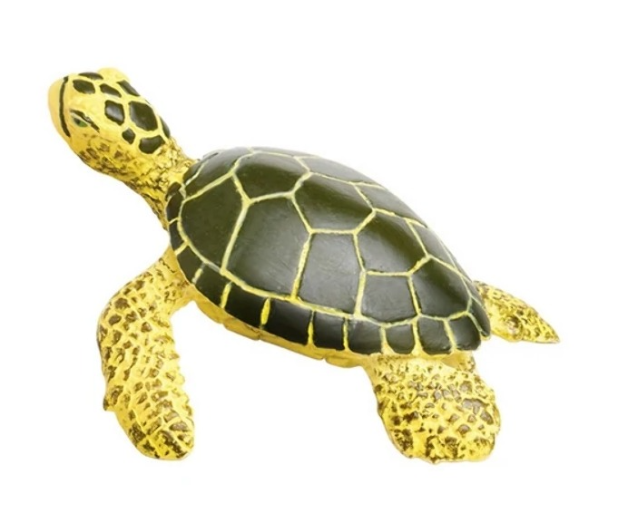 Deși într-o zi vor deveni țestoase de până la 1.5 m lungime, un pui are doar 5 cm la naștere. Această figurină are aproape 7 cm!