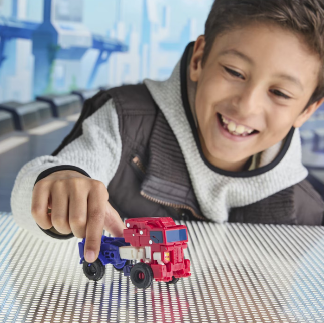 Figurina transformabila Optimus Prime din seria Transformers Cyberworld, care le ofera copiilor controlul asupra propriilor aventuri pline de actiune.