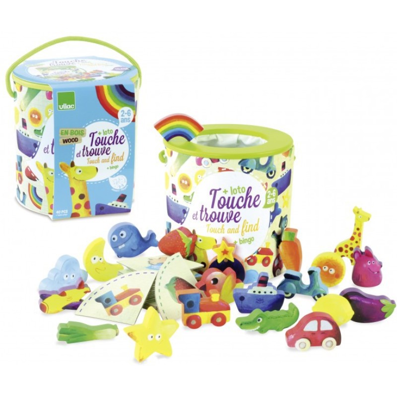 Un joc educativ destinat celor mici, ce presupune identificarea tuturor figurinelor din lemn. Recunoaștere tactilă nu a fost niciodată mai distractivă. Cutia cobține 21 de piese din lemn.