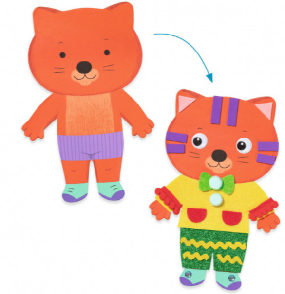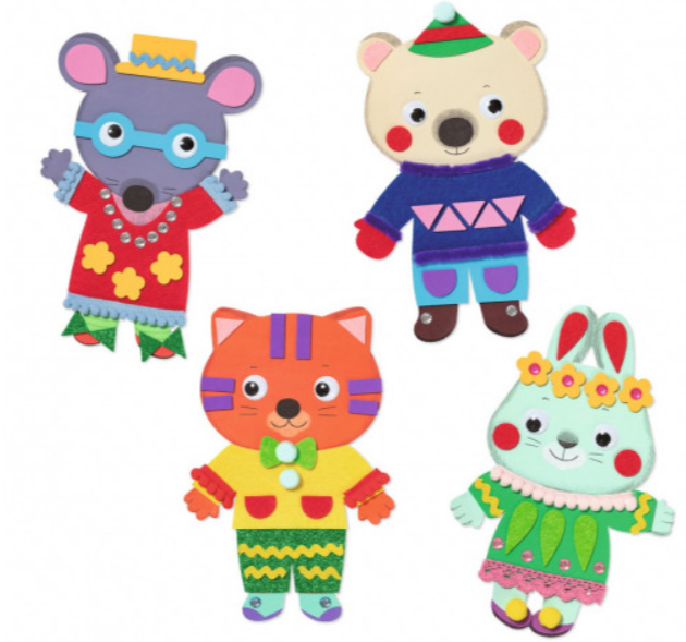 Un set complet de colaje pentru a decora 4 personaje cu o gamă largă de elemente texturate (pâslă, spumă, paiete, panglici, buline, ochi googly). Alege un personaj și lipește elementele pentru a-l accesoriza. Rezultat adorabil!