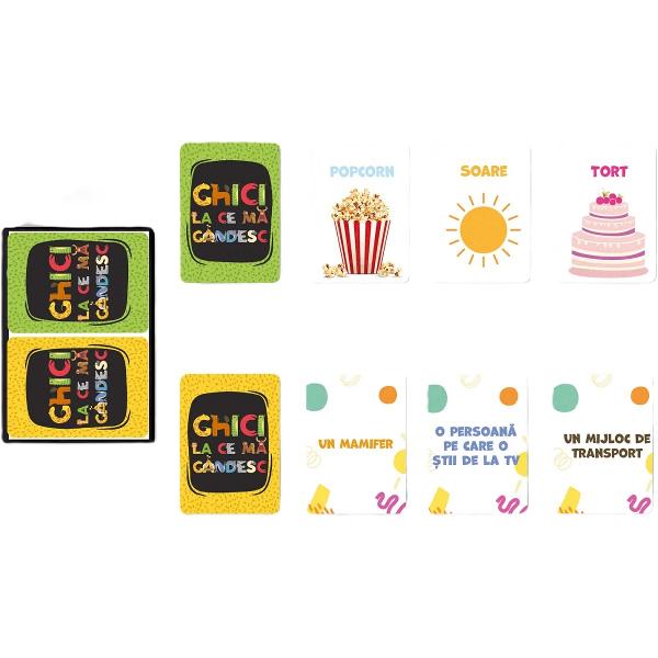 In cazul cartonaselor cu ilustratii, grupul trebuie sa ghiceasca ce este desenat pe cartonas (exemple: un elefant, o chitara, un tort).