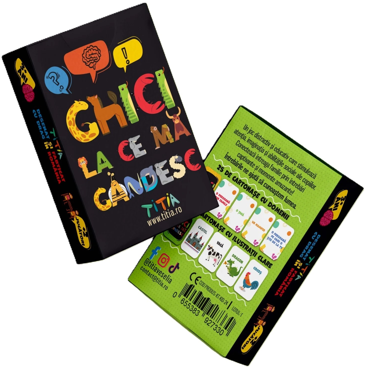 La joc astfel pot participa jucatori de toate varstele! Fiecare jucator extrage un cartonas, iar apoi raspunde la intrebari cu "Da" sau "Nu", pana cand ceilalti jucatori reusesc sa ghiceasca.