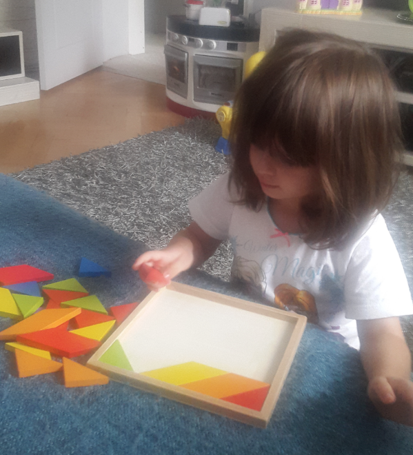 Aceasta tavita cu modele este perfecta pentru manutele curioase. Copiii vor fi incantati sa isi petreaca timpul aranjand in tavita gama de forme multicolore. Astfel vor obtine o varietate de modele, dar pot folosi si fiecare piesa in parte pentru a afla mai multe caracteristici.