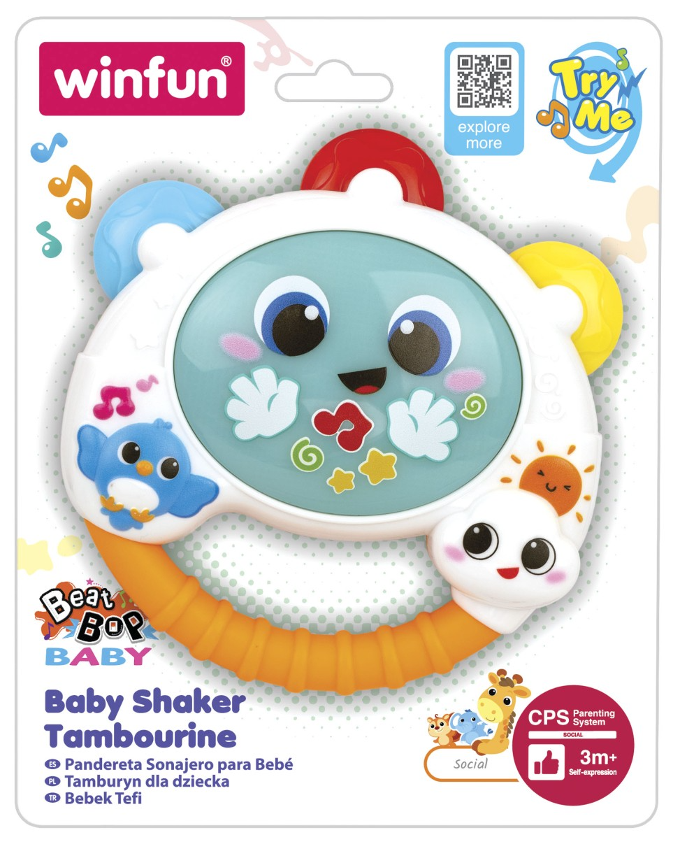 Tamburina Winfun este o jucarie muzicala ideala pentru bebelusi, conceputa pentru a stimula simturile si coordonarea. Cu un design colorat si vesel, aceasta este usor de apucat de catre micutul tau, oferindu-i o experienta de joaca interactiva. Atunci cand este apasata, tamburina emite sunete si melodii vesele, iar lumini intermitente se aprind, atragand atentia si stimuland curiozitatea copilului. Agitand tamburina, bebelusul va auzi sunete de pasarele si zgomote de zornait, ajutand la dezvoltarea auzului si a abilitatilor motrice fine. Jucaria este perfecta pentru a incuraja copilul sa exploreze sunetele si miscarile, iar dimensiunile sale sunt adaptate pentru mainile mici, asigurand o prindere confortabila. Aceasta tamburina este ideala pentru a adauga distractie si invatare in timpul jocului.