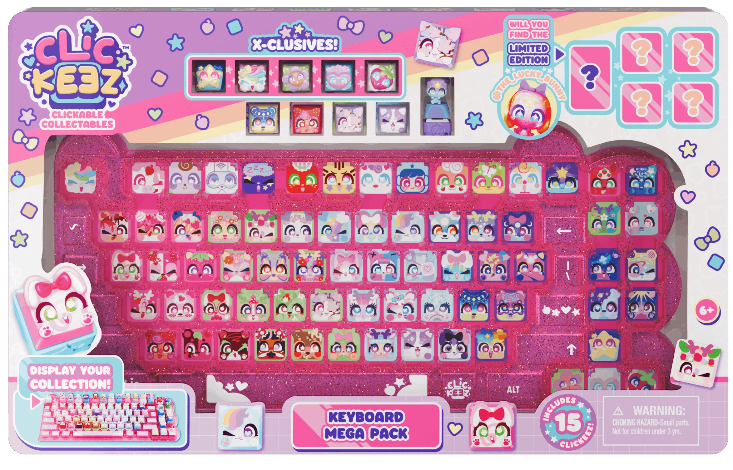 Tastatura Clickeez îți permite să îți expui și să te joci cu colecția ta Clickeez într-un mod unic! Umple tastatura cu Clickeez-urile tale preferate și bucură-te de senzația satisfăcătoare de „click” de fiecare dată când apeși. Fie că îți place să colecționezi, să te joci cu obiecte antistres sau pur și simplu îți plac sunetul și senzația de click, acest set oferă distracție nelimitată.