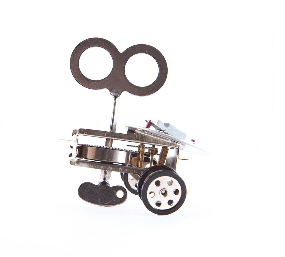 Jucarie mecanica cu cheita. Se poate deplasa peste obiecte mici. Este disponibil in mai multe culori.
