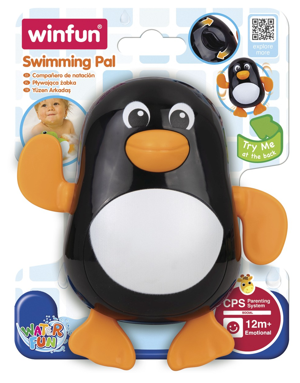 Winfun Jucarie de Baie Pinguinul inotator aduce multa distractie in timpul baii. Pinguinul se misca cu ajutorul inotatoarelor sale, activate prin rotirea butonului, oferind copiilor o experienta de joc captivanta. Jucaria este usor de curatat, fiind perfecta pentru a fi utilizata in apa. Ideala pentru micii iubitori de jocuri in baie, acest pinguin aduce un zambet pe fata celor mici, incurajand jocul activ si dezvoltarea abilitatilor motorii.