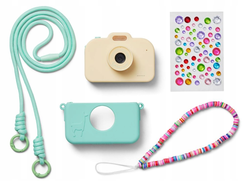 Husa moale din silicon, de culoarea mentă, face ca camera să fie confortabilă în mânuțele mici, iar autocolantele cu diamante incluse și brelocul adorabil vă permit să o decorați așa cum sugerează imaginația copilului dumneavoastră. Setul include, de asemenea, o cutie cu comori fermecătoare, astfel încât copilul dumneavoastră să poată depozita atât camera, cât și bibelourile sale preferate.