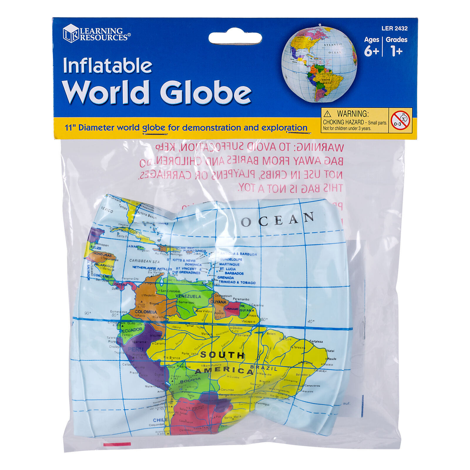 Globul gonflabil de 12" poate fi jucat ca o minge. Pachetul include un kit de reparații pentru glob și un ghid de activități cu diverse sfaturi în clasă pentru utilizare, inclusiv jocuri de geografie și hărți.