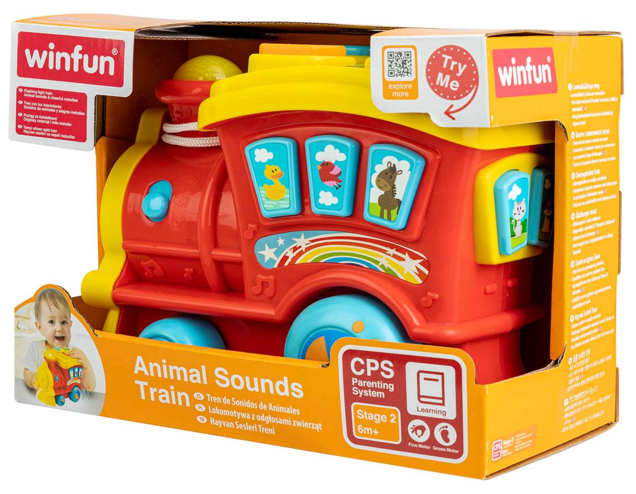 Trenuletul cu sunete de la Winfun ofera ore intregi de distractie si invatare. Aceasta jucarie poate fi trasa de copii, activand lumini intermitente si efecte sonore amuzante. Prin apasarea butoanelor numerotate de la 1 la 4 si a celor cu animale, copilul va invata sa identifice cifre si sa recunoasca sunetele specifice animalelor. Melodiile vesele si efectele sonore stimuleaza auzul si curiozitatea, iar designul viu colorat atrage atentia micutului tau. Ideal pentru dezvoltarea abilitatilor motorii si cognitive, trenuletul devine un partener perfect de joaca pentru cei mici, oferind ore intregi de explorare si veselie.