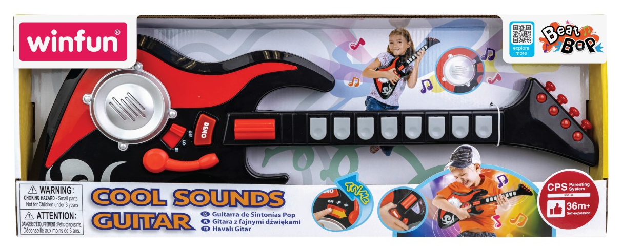 Chitara de la Winfun este o jucarie muzicala captivanta pentru cei mici, dotata cu 8 clape care produc sunete amuzante si efecte sonore. Copiii vor putea sa se distreze cu diverse melodii preinregistrate, care stimuleaza ritmul si auzul. Aceasta jucarie este perfecta pentru a incuraja dezvoltarea simtului muzical al celor mici, oferindu-le o experienta de joc interactiva si creativa. Cu sunete vesele si design colorat, chitara va capta atentia copiilor si ii va incuraja sa exploreze ritmuri si sunete noi intr-un mod distractiv.