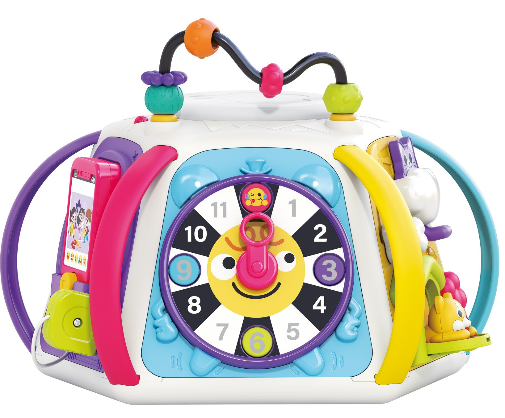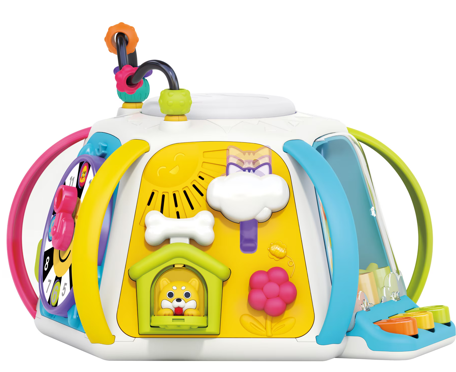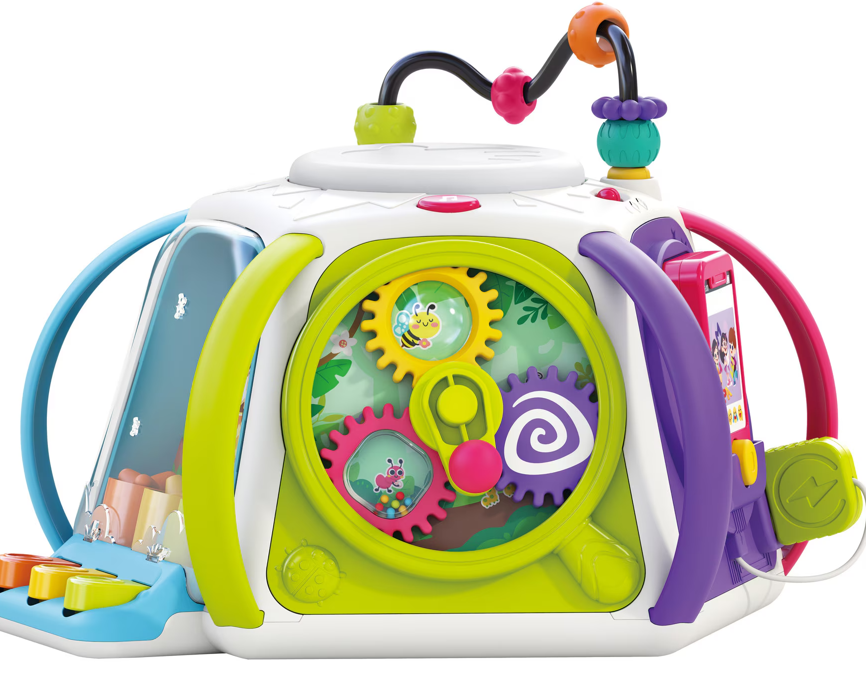Cubul Montessori pentru invatare timpurie este o jucarie interactiva recomandata pentru copii cu varste intre 18 si 36 luni. Ofera 14 activitati de invatare timpurie si 6 laturi interactive, concepute pentru a stimula dezvoltarea abilitatilor motorii fine, jocul de rol si intelegerea relatiei cauza-efect.