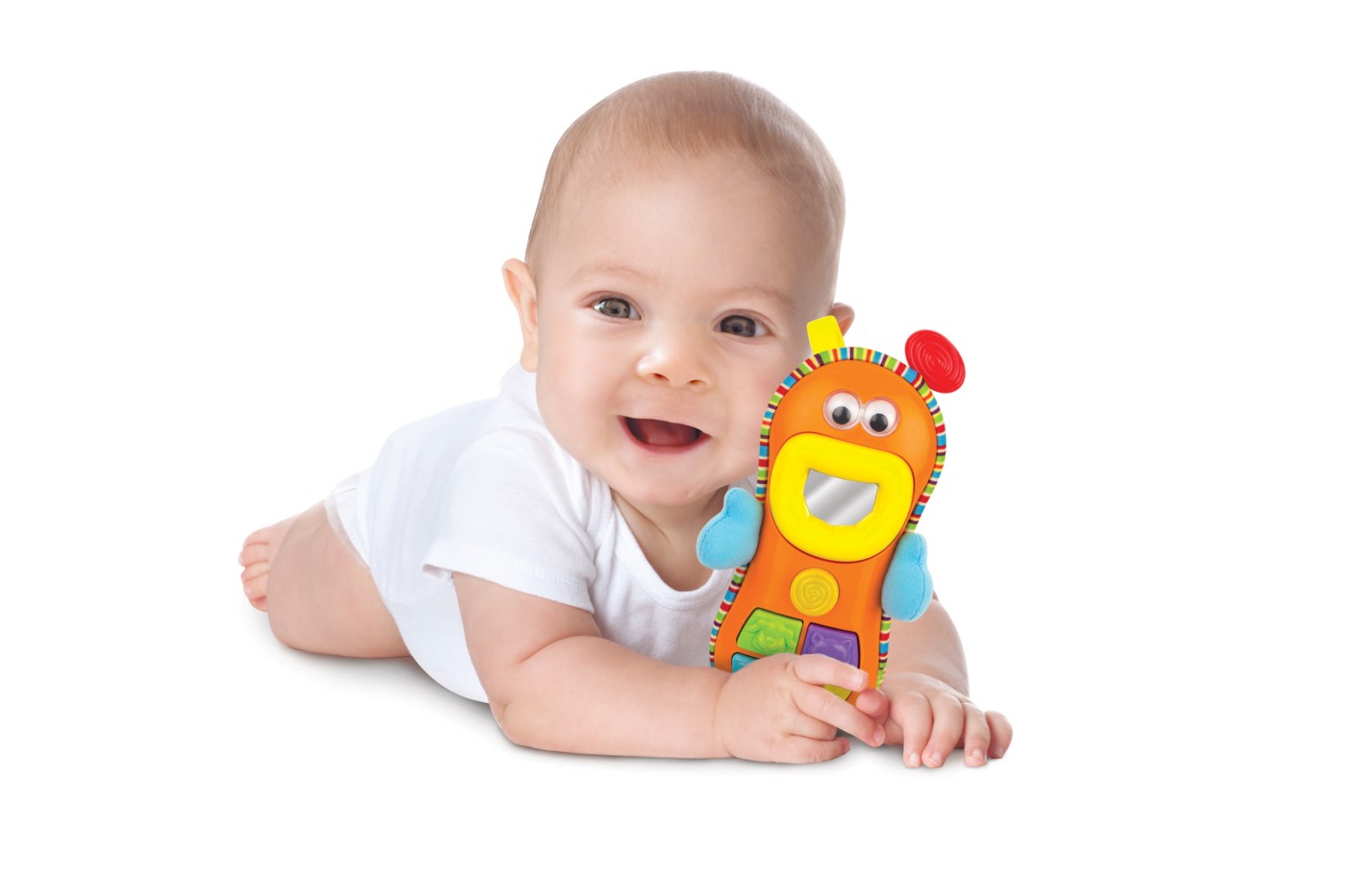 Ochii jucariei scot un sunet de zornait aducand un element suplimentar de distractie. Cu un inel de prindere convenabil, jucaria poate fi usor atasata la carucior, patut sau scaun auto. Recomandata pentru bebelusii cu varsta de cel putin 3 luni.