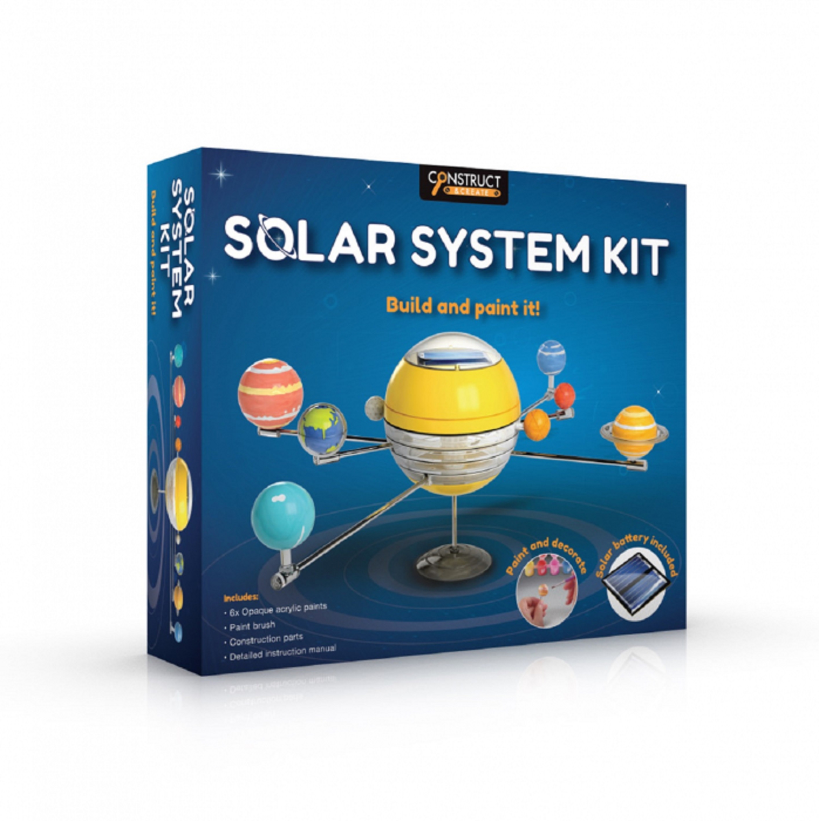 Kitul include: 1 suport pentru Soare, 8 Planete, 1 Panou solar, 1 Pensula, 6 culori acrilice si instructiuni.