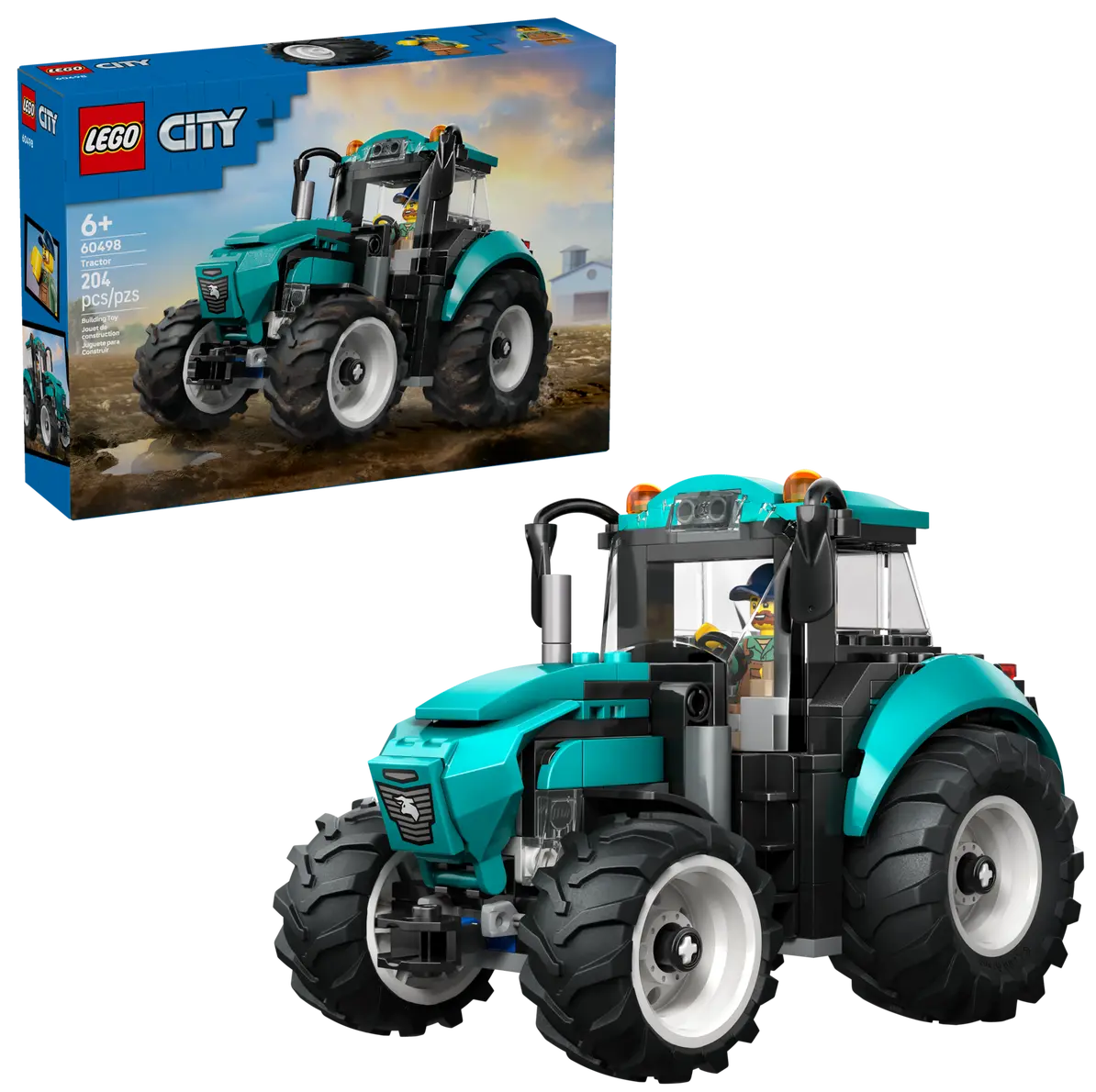 Dă frâu liber imaginației copiilor cu acest set de construcție LEGO® City Tractor agricol (60498) pentru copii cu vârsta începând de la 6 ani. Acest vehicul agricol, bine realizat, se remarcă prin nuanța verde-turcoaz și cele 4 roți mari din cauciuc, specifice unui tractor. Micii constructori pot scoate acoperișul cabinei ca să așeze minifigurina fermier la volan și pot deschide capota pentru a verifica motorul înainte de a porni în aventuri pline de imaginație, la țară. Acest tractor LEGO City de construit este un cadou grozav de ziua de naștere sau pentru sărbători, perfect pentru copiii de 6 ani și mai mari, atât fete cât și băieți care adoră utilajele agricole și joaca fantezistă interactivă. Adaugă acest set la alte seturi LEGO® City (vândute separat) pentru și mai multe aventuri la fermă. Cei mici se pot bucura de o experiență intuitivă de construit cu acest set LEGO® Tractor în aplicația LEGO® Builder, unde pot mări și roti modelul cu instrucțiuni 3D, în timp ce salvează și urmăresc progresul. Setul conține 204 piese.