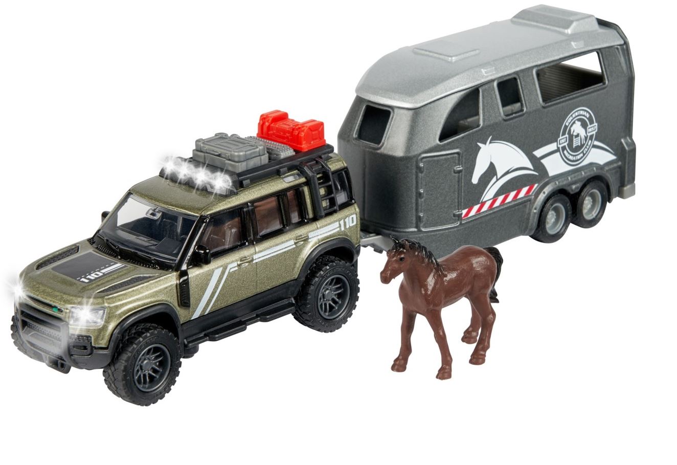 Majorette – Land Rover Defender cu remorca pentru cai combinatie premium vehicul/remorca cu cal de jucarie, efecte luminoase si sonore, numeroase functii, pentru colectionari si copii cu varsta peste 3 ani. Majorette Land Rover Defender Horse Carrier Pregateste-te pentru urmatorul turneu!Dispunand de o remorca pentru cai sic, acest model Land Rover are tot ce aveti nevoie pentru a transporta caii in siguranta. Cadoul perfect pentru toti fanii de masini si cai! Pe langa un design complex, modelul de vehicul Majorette vine si cu mai multe functii practice care sunt garantate pentru a distra copiii mici, inclusiv doua efecte sonore diferite, doua faruri si o lumina incorporata pe portbagaj care poate fi comutata. porniti si opriti dupa cum doriti. Cutia de acoperis poate fi deschisa pentru a dezvalui doua recipiente, un suport de tractiune, o scara si o cutie de depozitare. Usa din spate poate fi deschisa si pentru a accesa roata de rezerva in caz de urgenta. Remorca pentru cai este fabricata din metal si are o rampa de plastic pliabila pentru incarcarea si descarcarea calului.