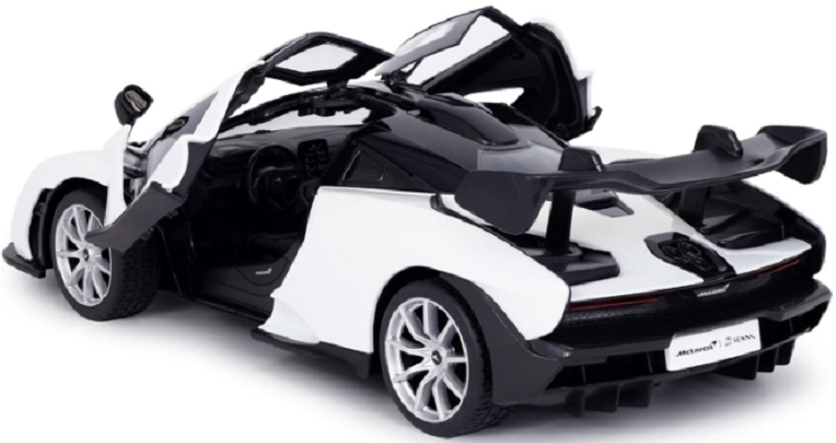 Copilul dumneavoastra se poate juca in voie cu masina cu telecomanda MCLAREN SENNA ALB, scara 1 la 14, oferita de brandul international Rastar.