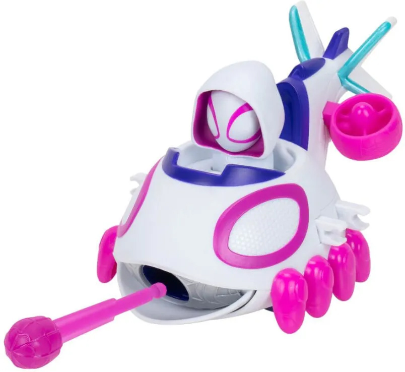 Porneste intr-o noua aventura cu Paienjenelul Marvel si prietenii sai uimitori! Avandu-l pe uimitorul Paienjenel la volan, acest vehicul de aproximativ 12 cm are patru roti functionale si un lansator ascuns de sageti Web Dart. Mai intai, plaseaza cele doua sageti incluse pe aripile spoilerului. Cand esti gata, apasa pe capul Paienjenelului pentru a deschide capota si a dezvalui lansatorul de sageti. Incarca sageata Web Dart si inchide capota. Apasa din nou pe cap pentru a deschide capota, a lansa sageata si a salva ziua.