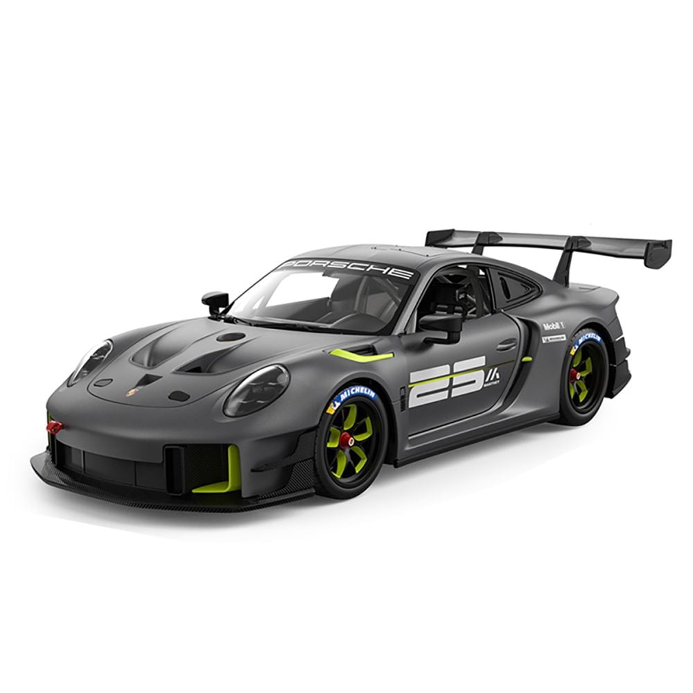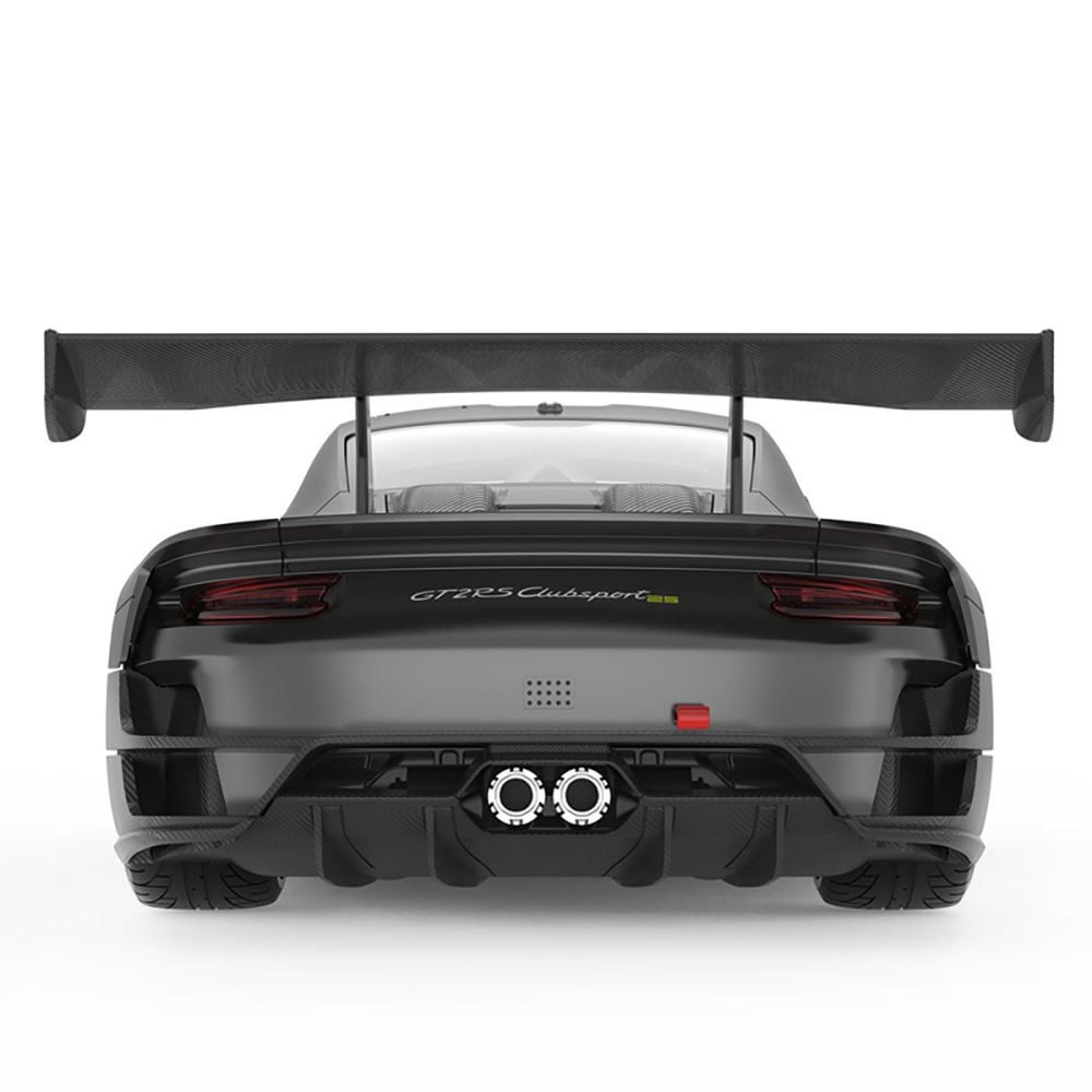 Masina cu telecomanda PORSCHE 911 GT2 RS CLUBSPORT 25, scara 1 la 14, poate rula cu o viteza aproximativa de 10km/h, are tractiune 2WD, anvelope de cauciuc, posibilitate de reglaj a directiei direct pe sasiu si o raza de actiune a telecomenzii de circa 20 de metri.