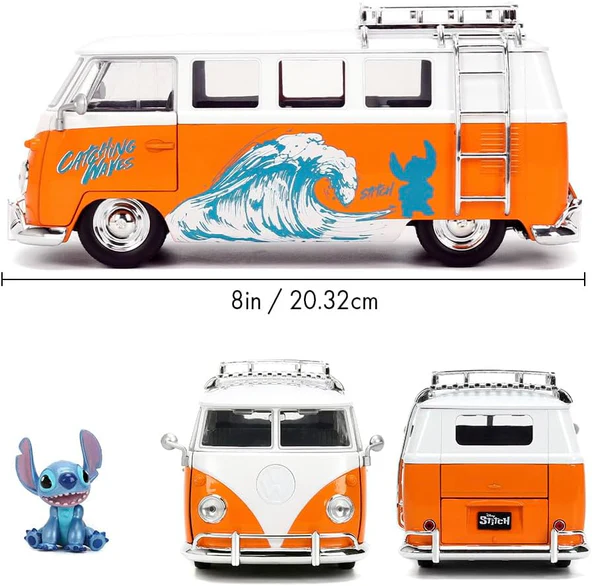 Cu finisajul său îndrăzneț portocaliu și alb și designul complex, acest model este o piesă remarcabilă atât pentru fanii lui Stitch, cât și pentru vehiculele vintage.