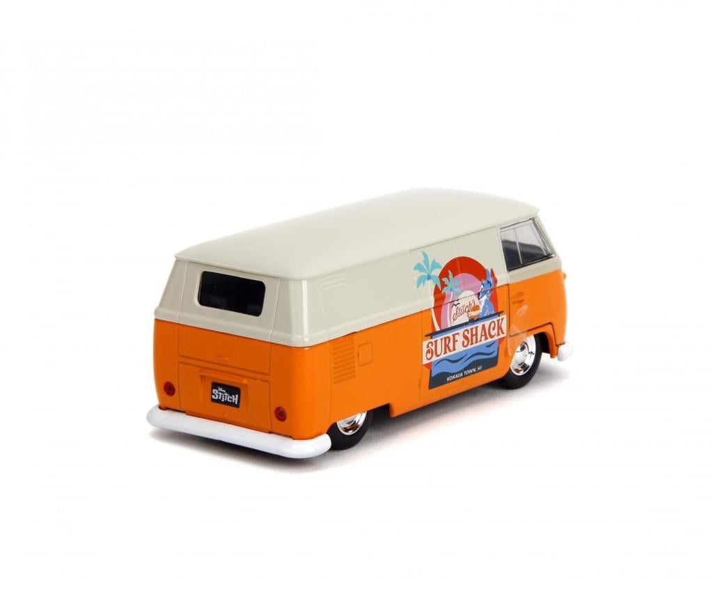 Mașină Stitch VW Bus 1961 în designul Surf Shack al lui Stitch (13,5 cm) - Mașină model Volkswagen din metal cu uși care se deschid