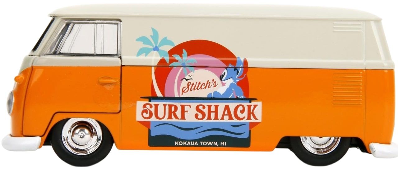 Mașină cu funcție de roată liberă: Replică a Volkswagen T1 din 1961 cu ilustrația lui Stitch Surf Shack