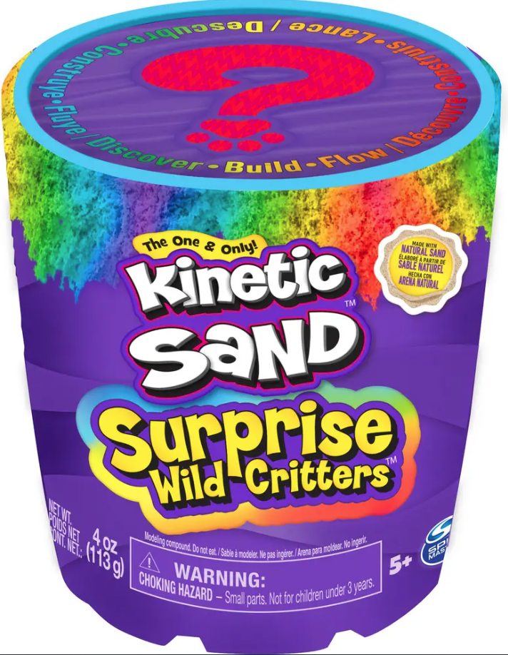 Ideal pentru copiii cărora le plac surprizele, le place să fie creativi și se bucură de animăluțele. Recipientul Kinetic Sand Surprise conține 113g de nisip Kinetic original în orice culoare, cu o textură magic curgătoare, fabricat în Suedia.