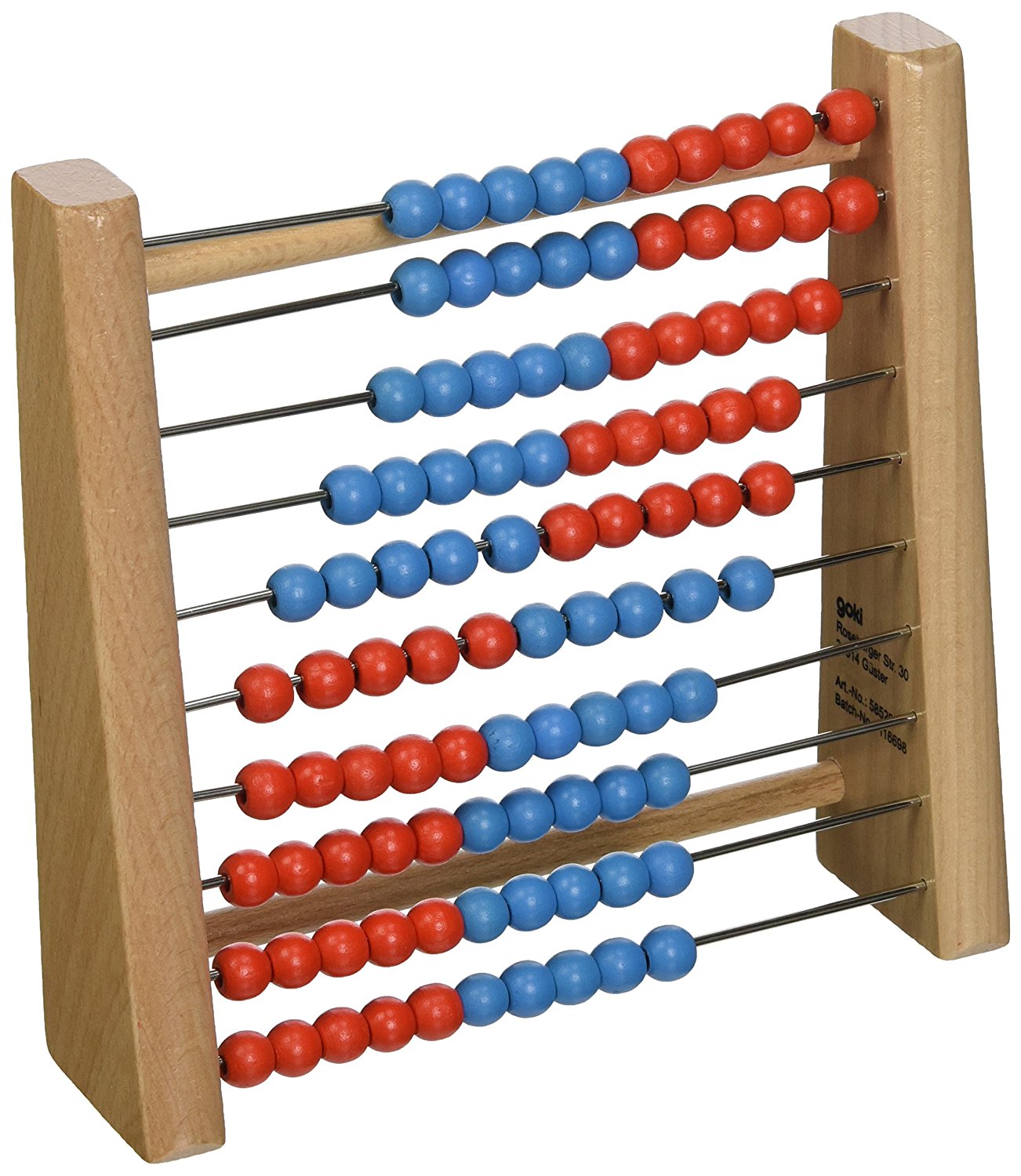 Numaratoare din lemn cu 100 bile colorate albastru si rosu.