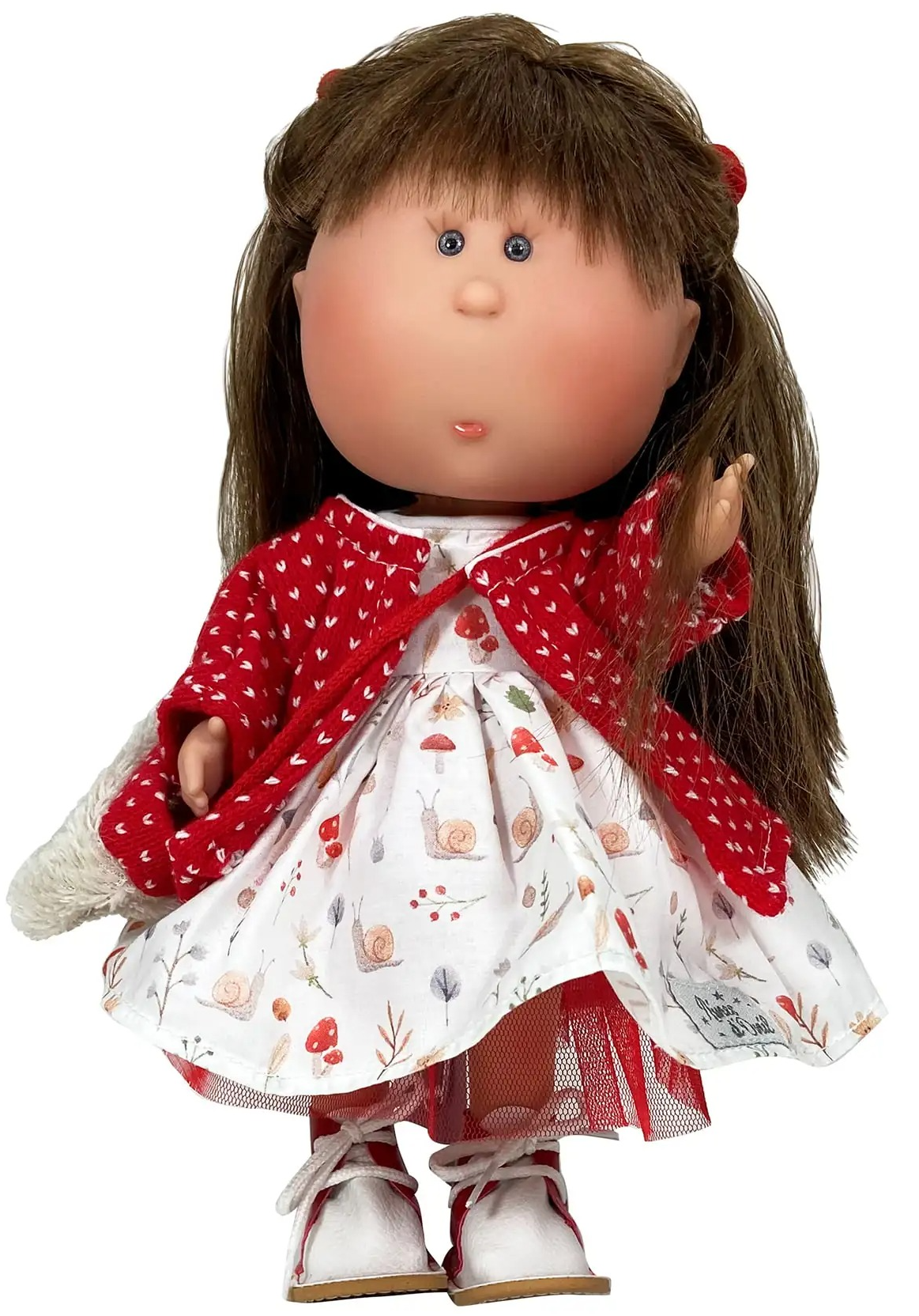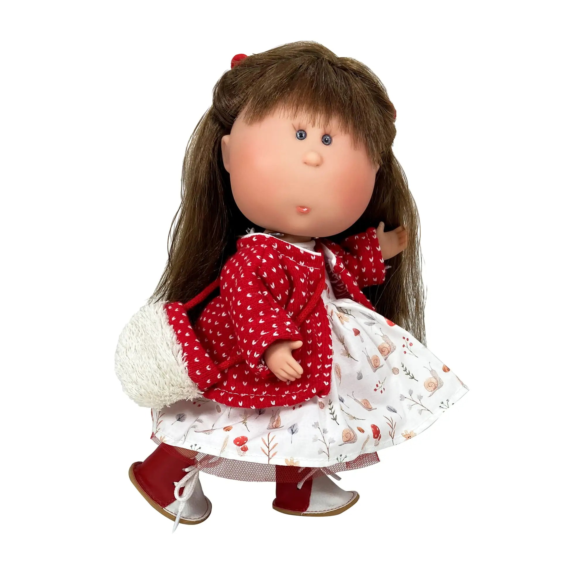 Papusa artizanala - Mia cu par saten si palton rosu (miros de vanilie)