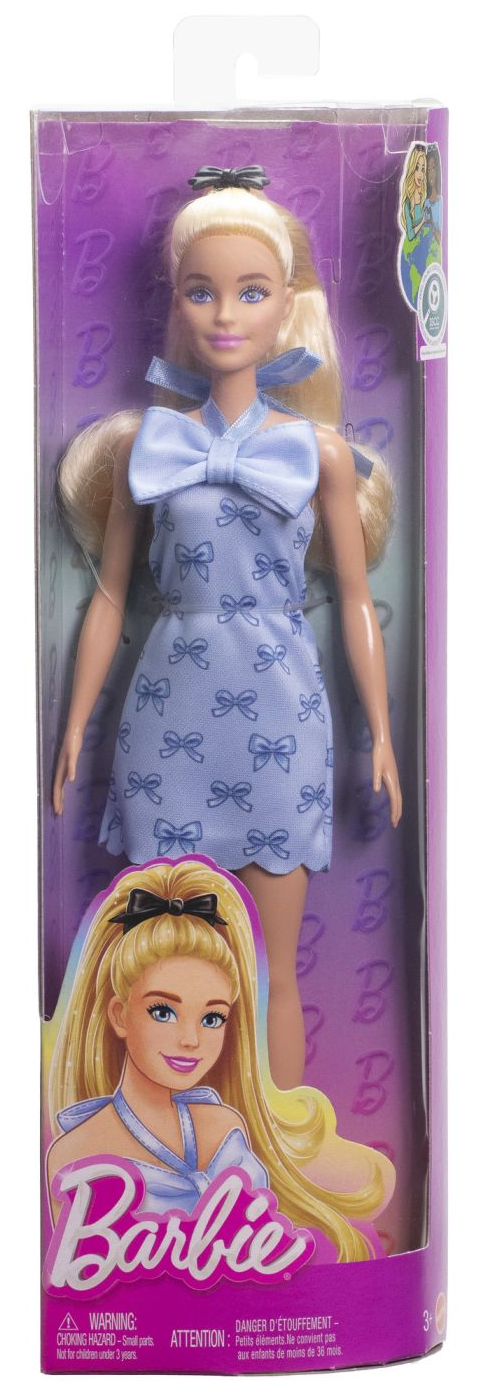 Fashionistas este una dintre cele mai indragite colectii Barbie, oferind o gama larga de papusi cu diferite stiluri si accesorii, introducand conceptul de diversitate si acceptare in randul fetelor. Aceasta colectie include papusi cu diferite tipuri de siluete, tonuri de piele, culori de ochi si par, astfel fetele nu se vor plictisi niciodata si isi vor gasi papusa asemanatoare stilului lor. Papusile au stilul lor propriu, inspirat de ultimele tendinte din moda si vin cu o tinuta completa, incaltaminte si accesorii fabuloase. Hainutele sunt confectionate astfel incat se pot potrivi oricarei papusi din gama Fashionistas. Descopera fiecare papusa Barbie din colectia Barbie Fashionistas si exploreaza lumea minunata a modei! Aceasta papusa Barbie din gama Fashionistas are parul blond, desprins. Pantofii cu toc albastri complementeaza perfect aspectul sau. Rochia ei albastra cu fundite ii scoate in evidenta personalitatea si adauga un plus de eleganta tinutei ei.