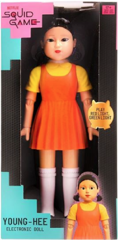 Păpușă electronică Young-Hee din populara serie Squid Game! Cap rotativ, senzori, ochi luminoși și sunete originale .