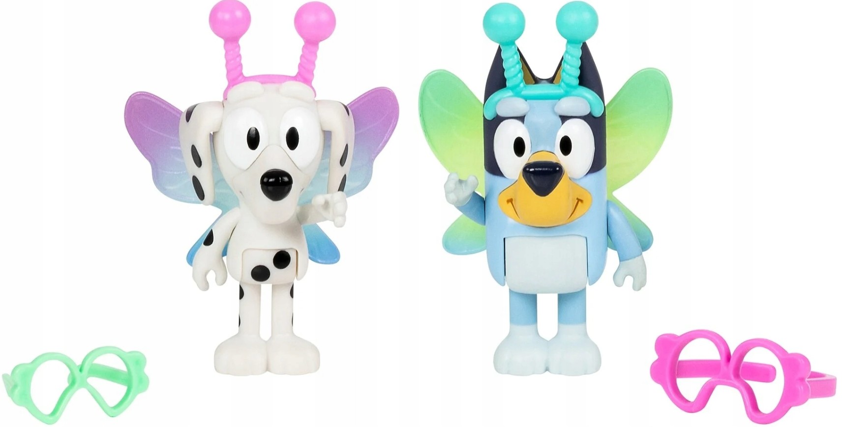 Adaugă puțină distracție și imaginație inspirată din universul Bluey în casa ta cu acest set de joacă fermecător! Setul este inspirat din episodul „Spațiul” din Bluey, unde Bluey și Chloe se costumează în extratereștri. Pachetul conține figurine Bluey și Chloe de 6,4 cm, echipate cu aripi, antene și ochelari!